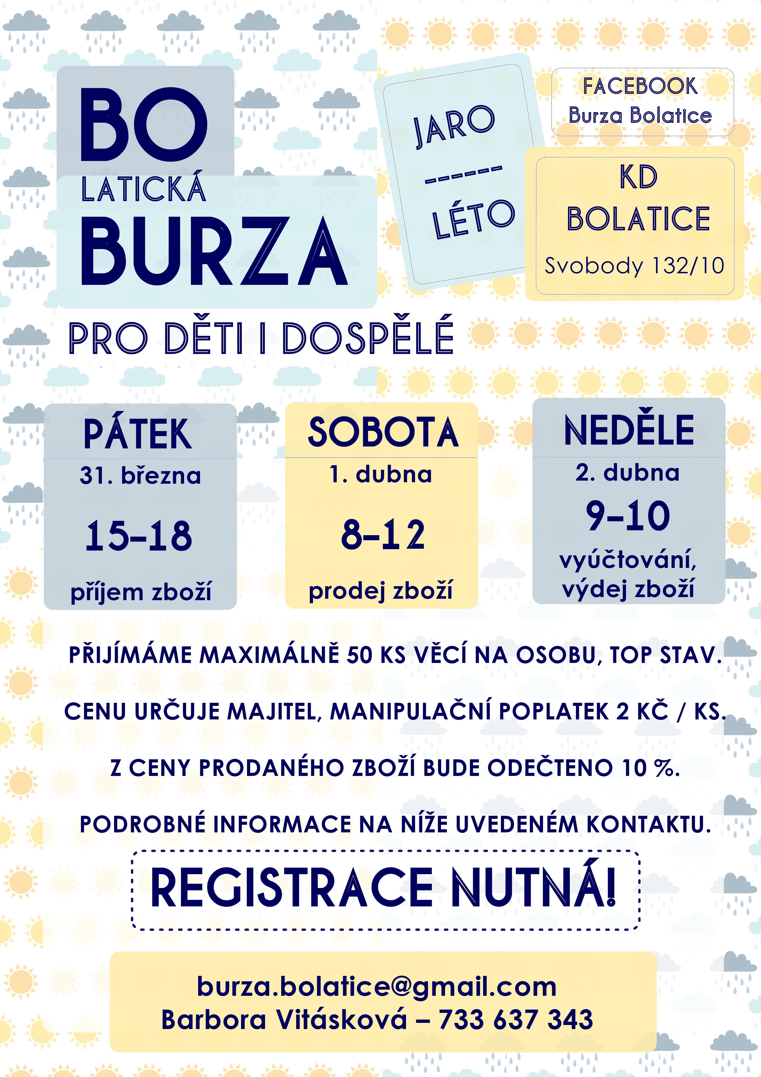 Od 31. března do 2. dubna proběhne v Bolaticích burza oblečení pro děti a dospělé - Jaro - Léto.