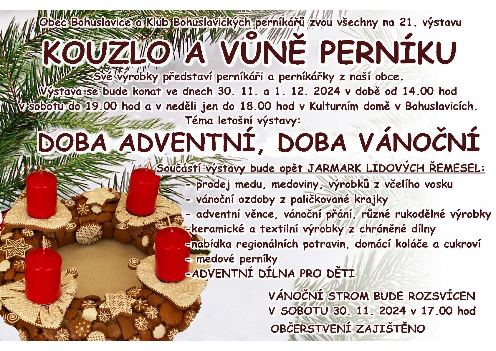 Obec Bohuslavice zve na akci Kouzlo a vůně perníků. (viz. plakát)