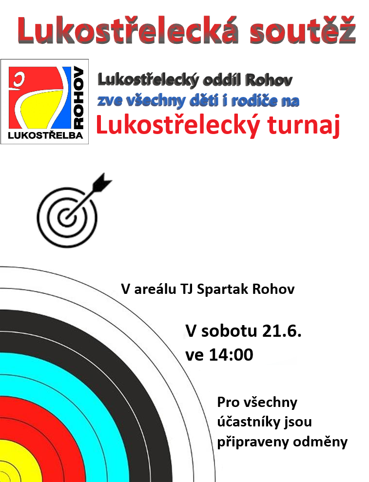 V sobotu 21.6. 2025 se bude konat na hřišti v Rohově Lukostřelecká soutěž. (viz. plakát)