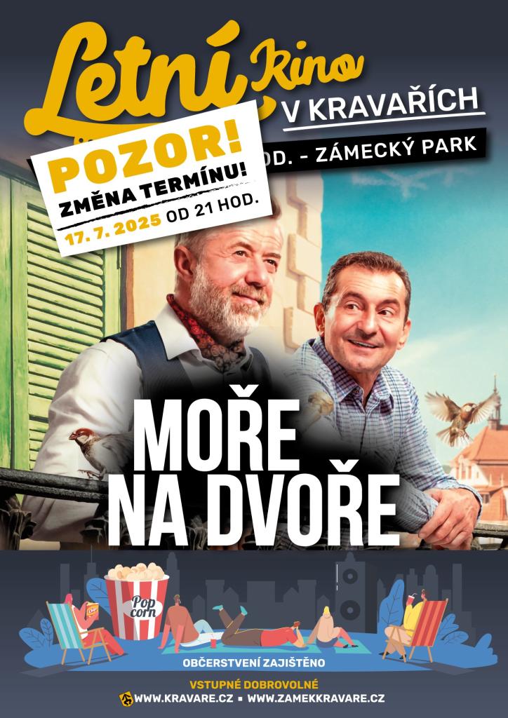 Nabídka programu na zámku v Kravařích (viz. přílohy) Změna letního kina na příští čtvrtek 17.7.2025.
