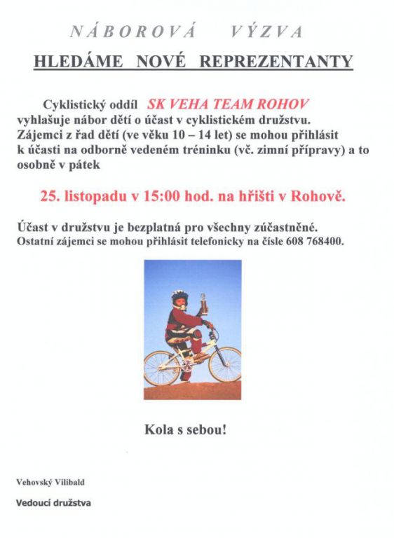 NÁBOROVÁ VÝZVA cyklistického oddílu SK VEHA TEAM