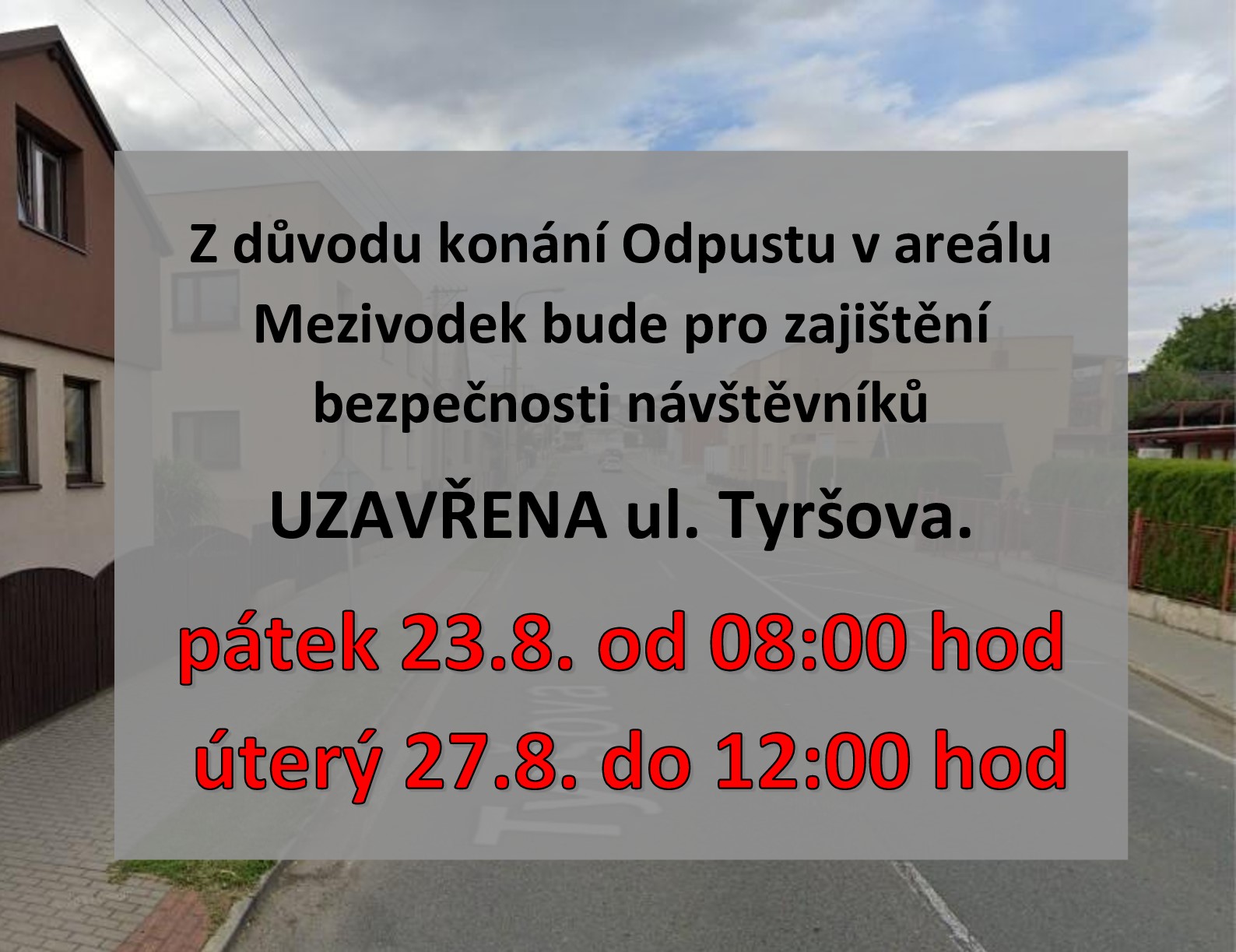 Uzavírka ul. Tyršova. Oznámení o změně úředních hodin MěÚ Kravaře, Kravařský odpust (viz. přílohy)
