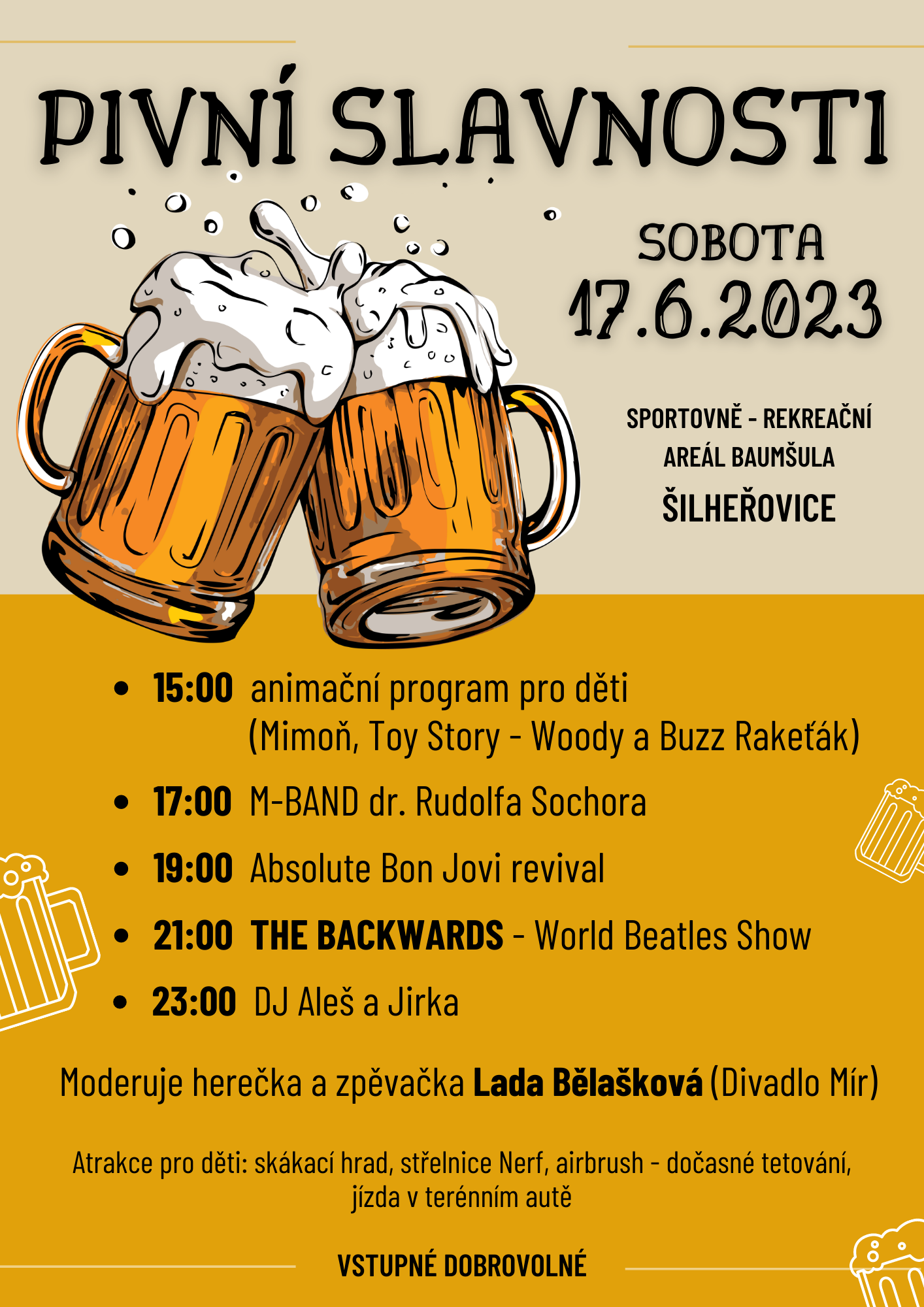 Dne 17. června 2023 od 15:00 hodin se uskuteční v Šilheřovicích Pivní slavnosti. (viz.plakát)
