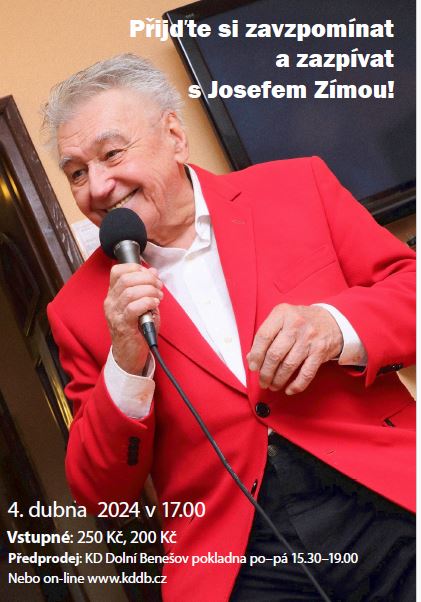 Pozvánka na koncert legendárního zpěváka Josefa Zímy, kterému je 91 let. Přijďte si zavzpomínat a zazpívat s Josefem Zimou.