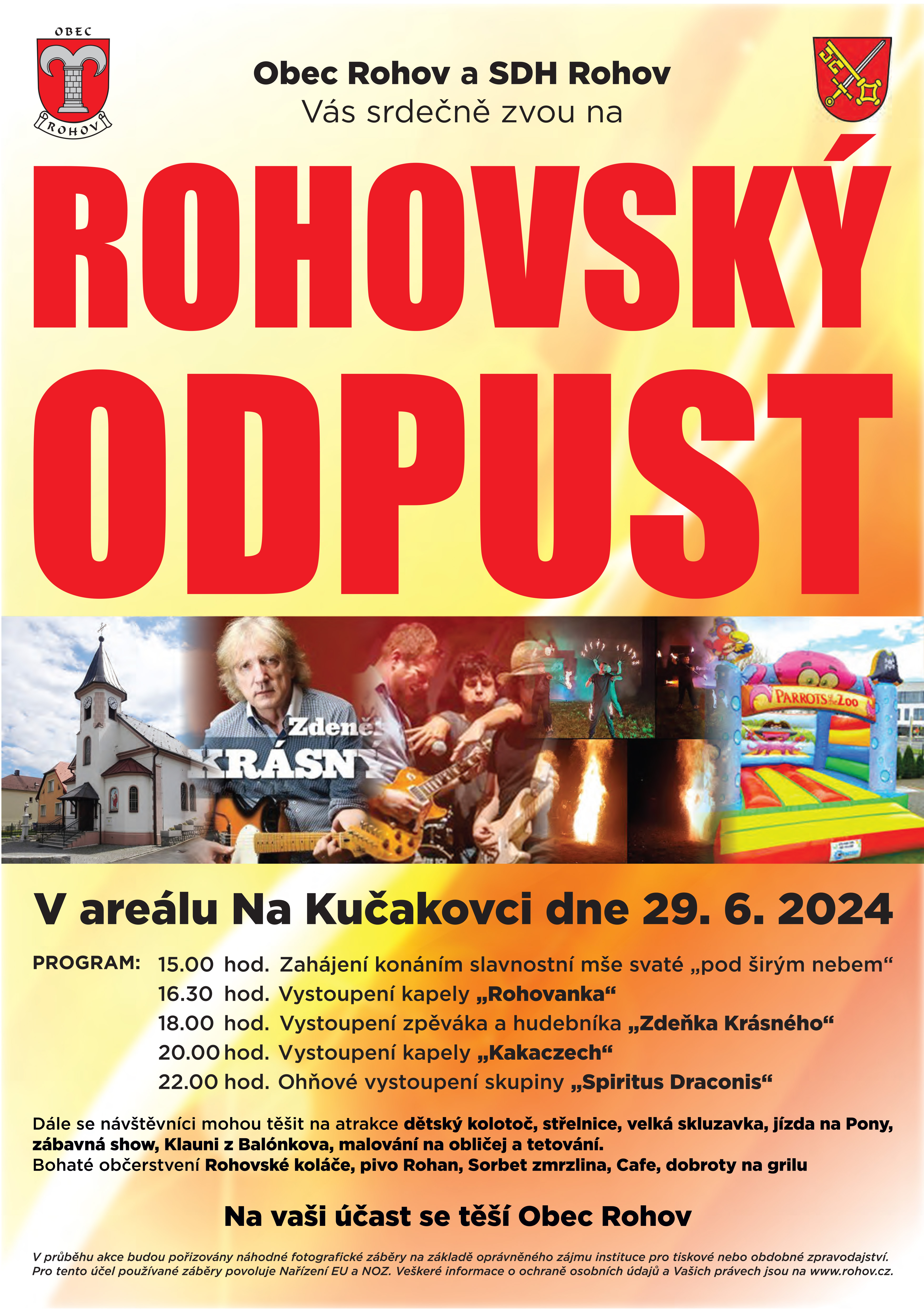 Obec Rohov a SDH Rohov Vás zvou na tradiční Rohovský odpust. (viz. plakát)