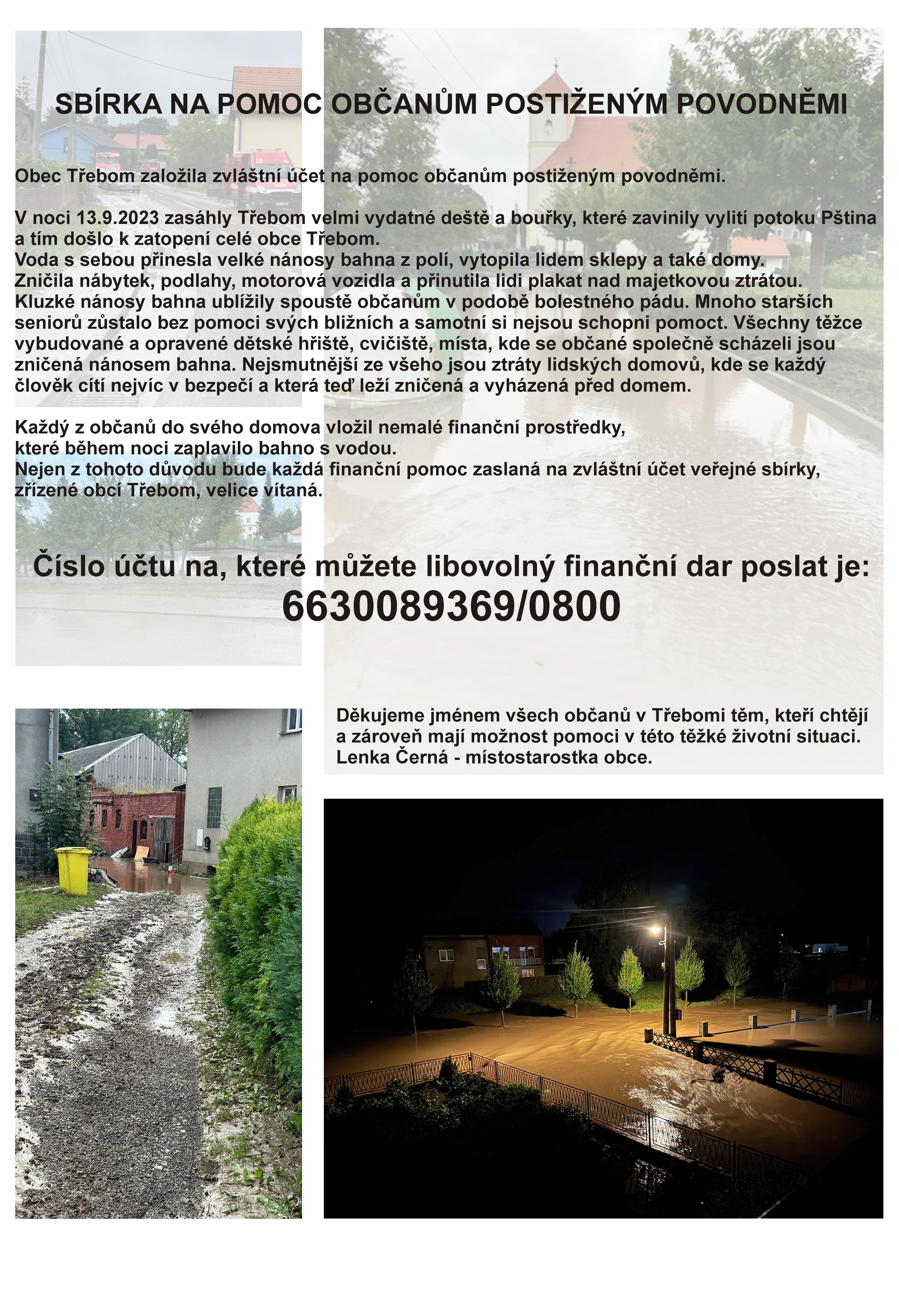 Obec Třebom založila zvláštní účet na pomoc občanům postiženým povodněmi. (viz. plakát)