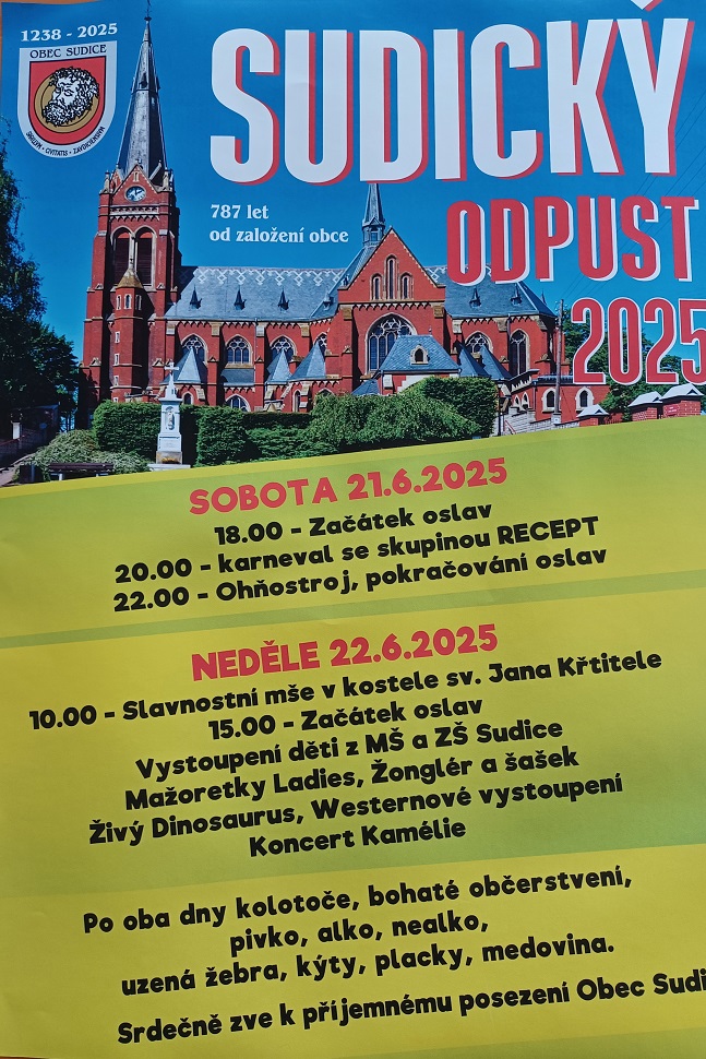 Obec Sudice zve na akci Sudický odpust. (viz. plakát)