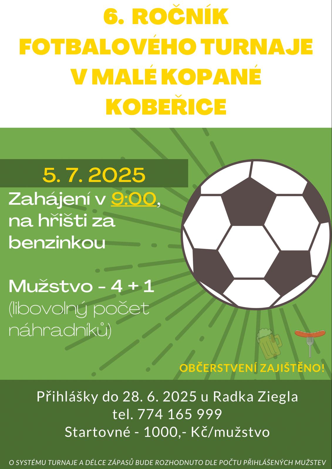 6. ročník fotbalového turnaje v malé kopané v Kobeřicích (viz. plakát)
