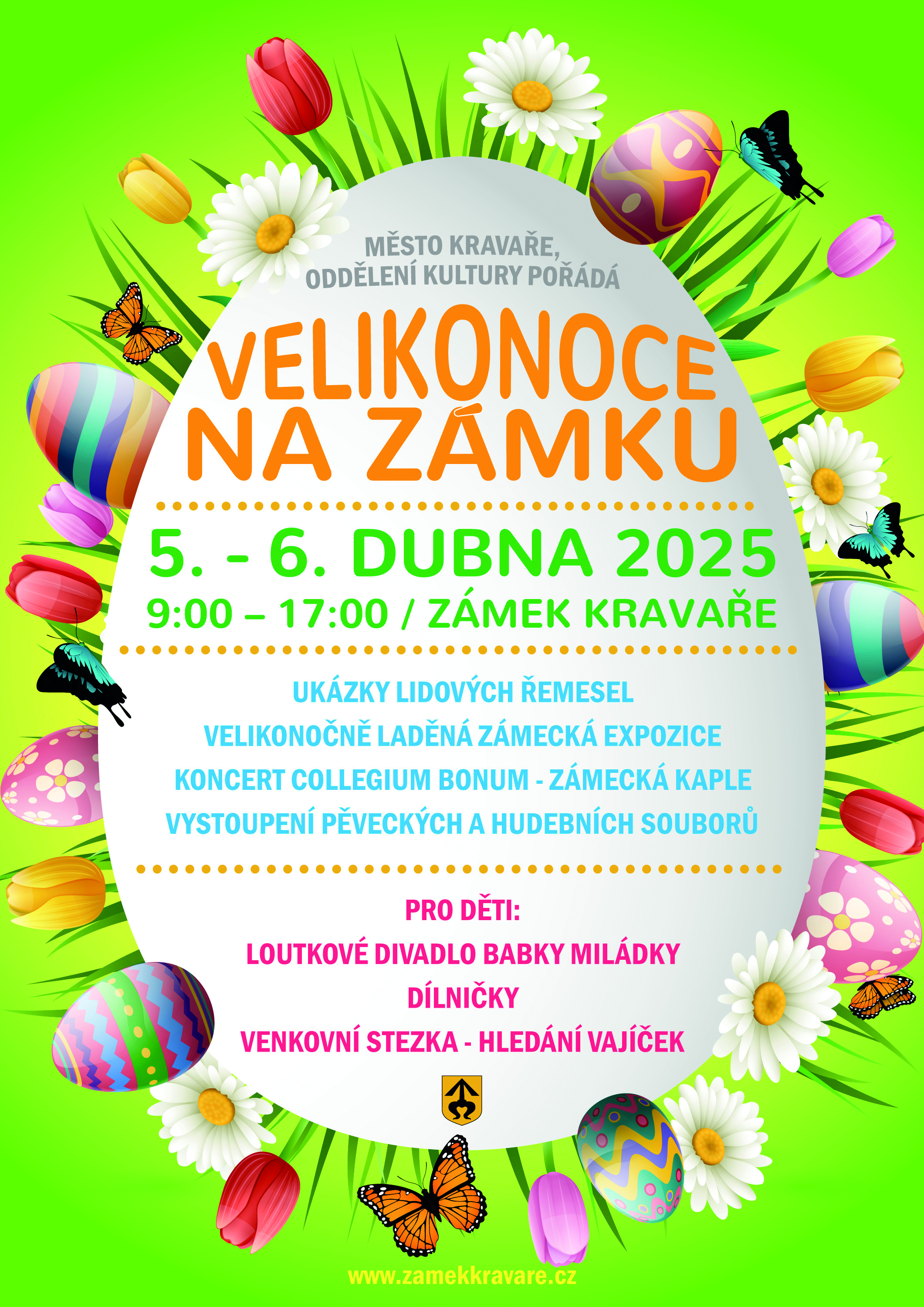 Město Kravaře, oddělení kultury pořádá akci Velikonoce na zámku. (viz. plakát)