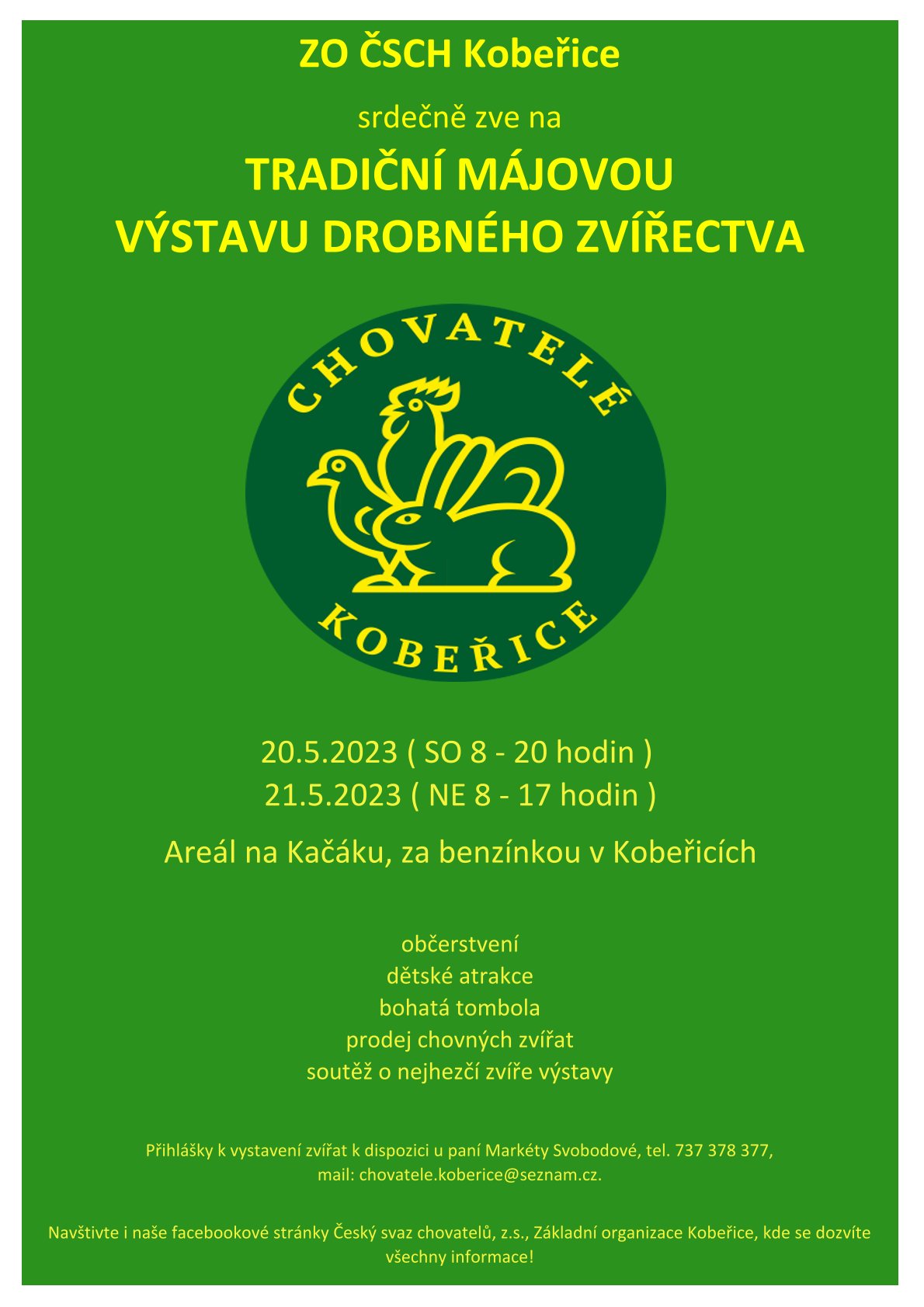 ZO ČSCH Kobeřice srdečně zve na TRADIČNÍ MÁJOVOU VÝSTAVU DROBNÉHO ZVÍŘECTVA.(viz. plakát)
