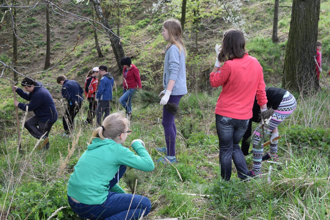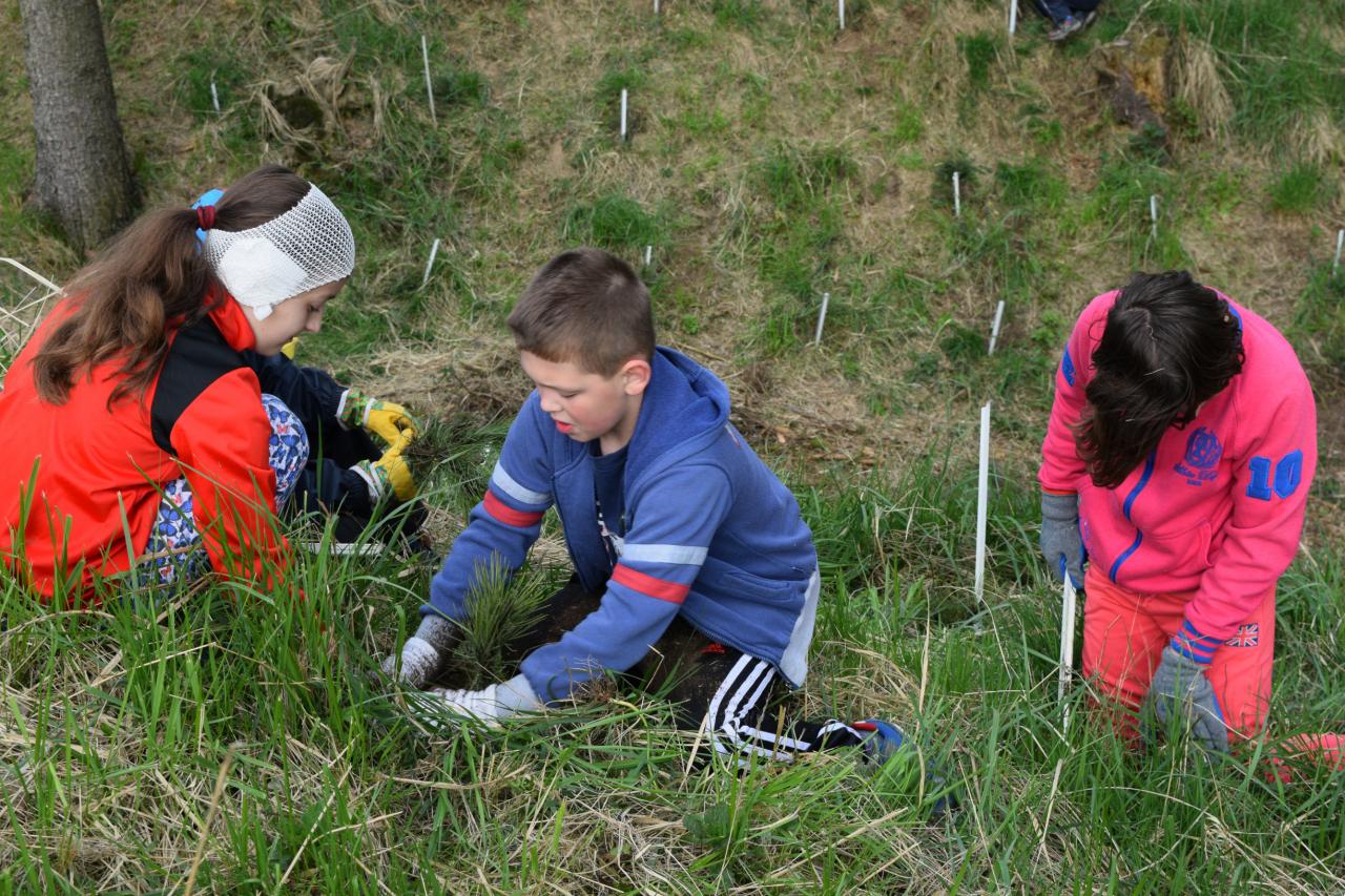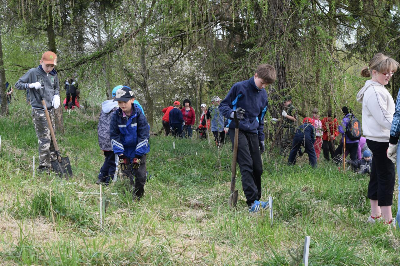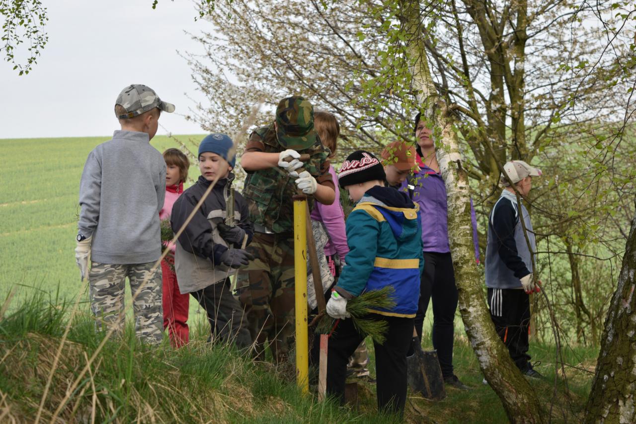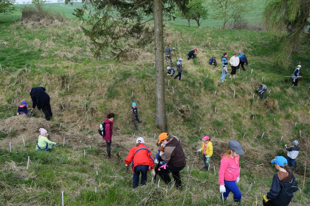 Výstavka prací dětí MŠ ke Dni Země. Výsadba dětí a žáků.