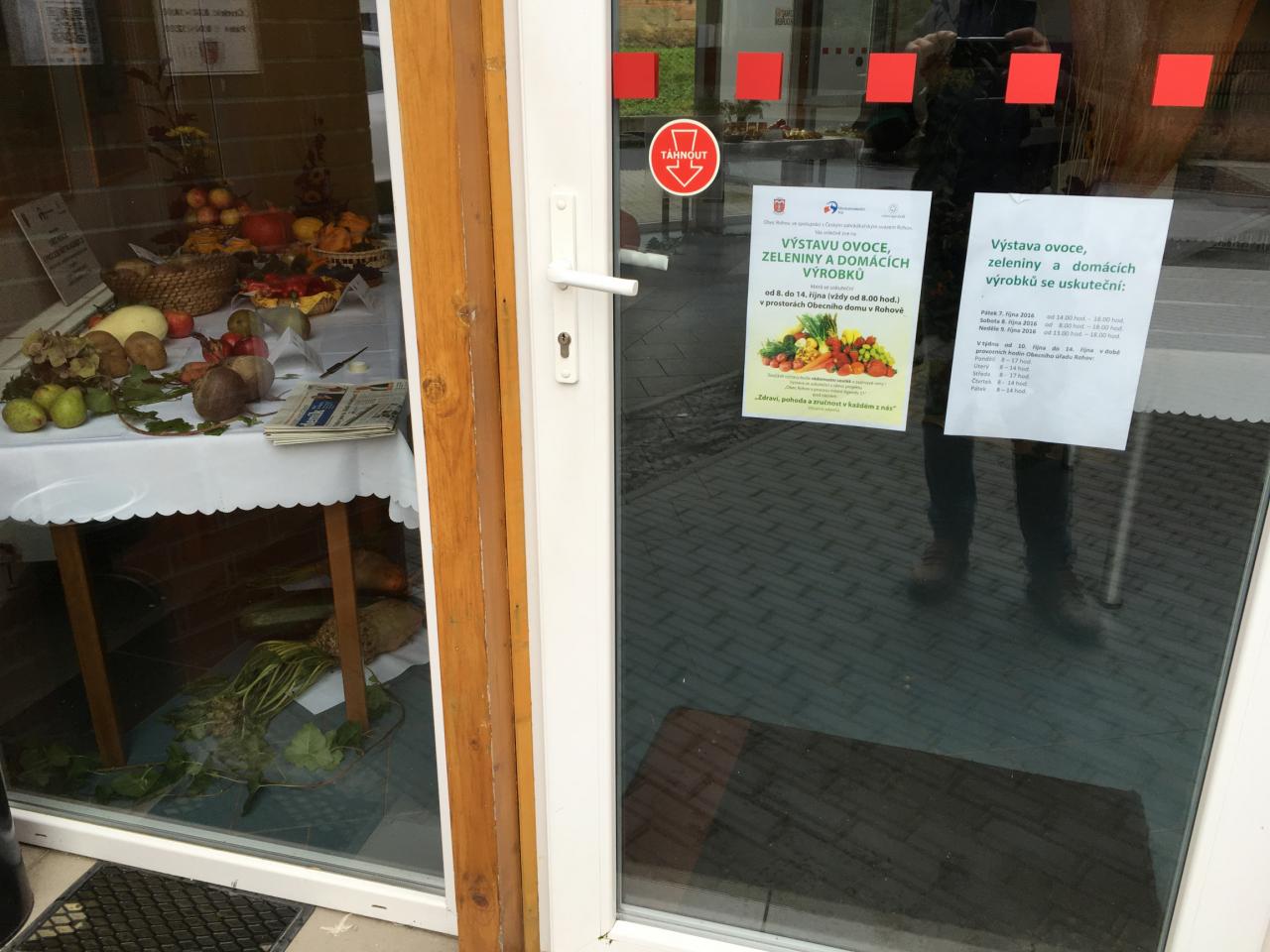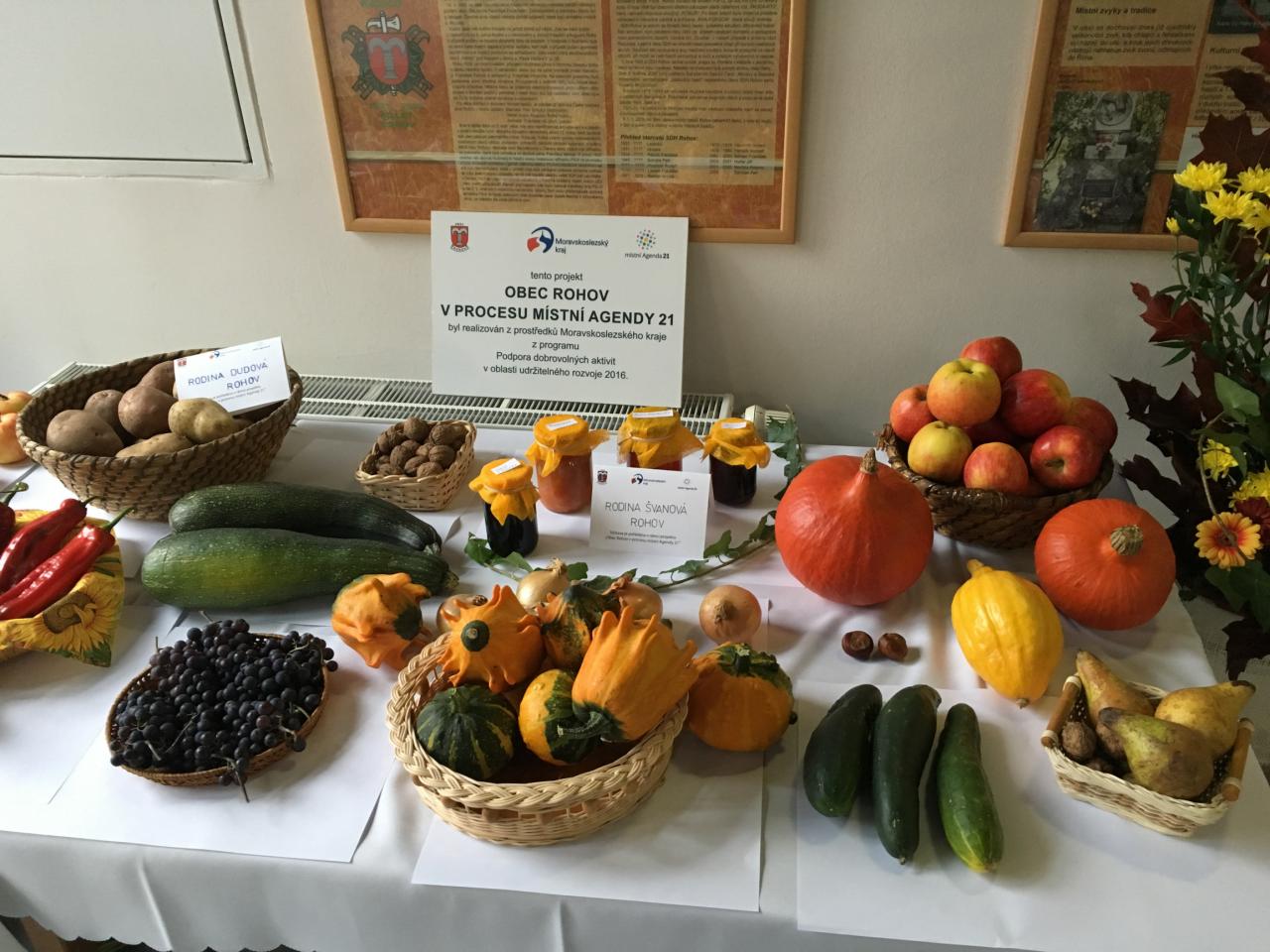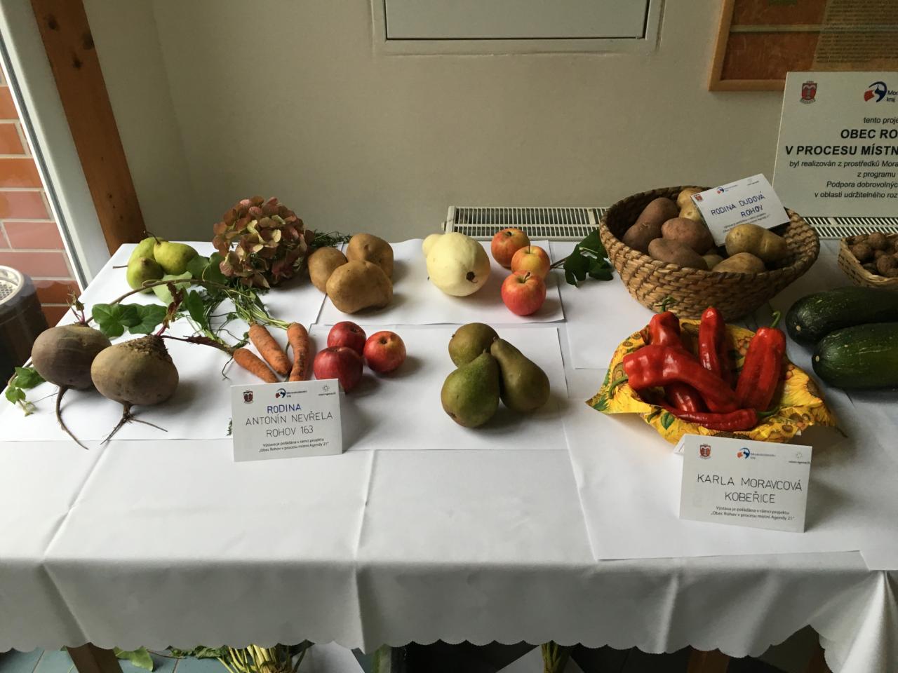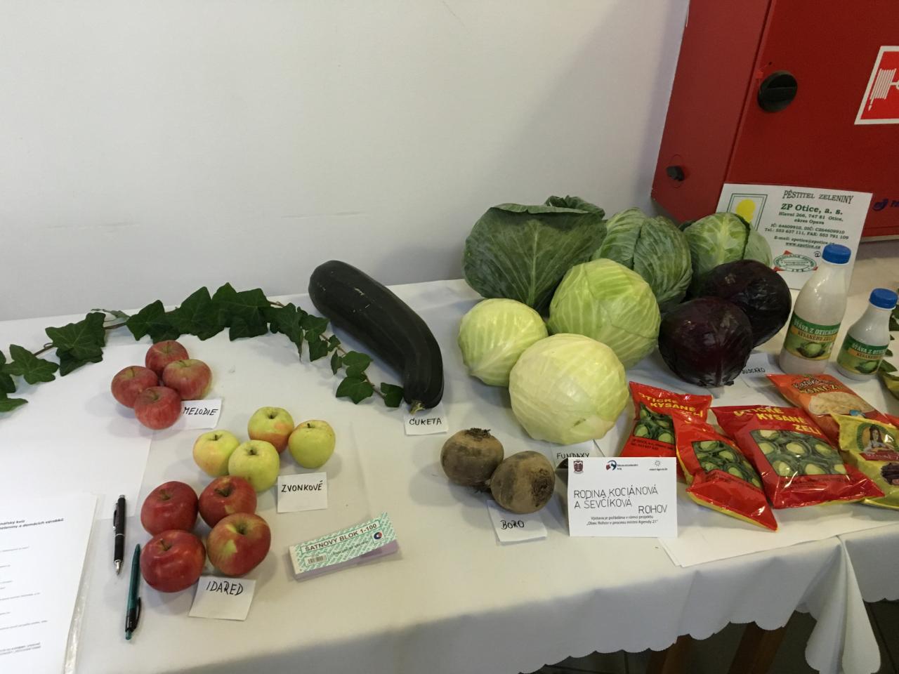 Výstava ovoce a zeleniny v chodbách Obecního domu. Výstava plodů občanů naší obce. Ochutnávka produktů.