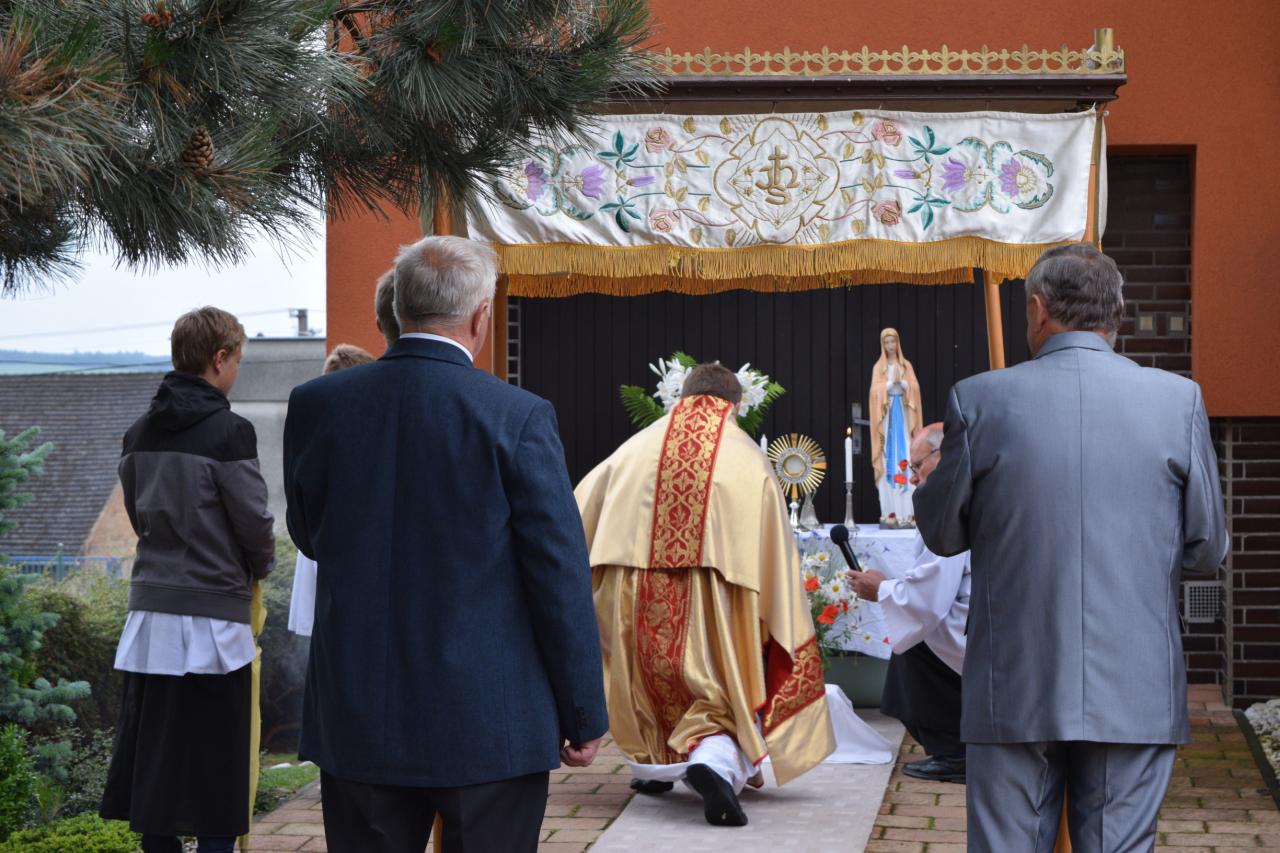 Průvod Božího těla v obci.